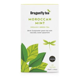 Dragonfly Moroccan Mint Tea (20 bags) PROMOTIONAL OFFER 20% OFF!An authentic blend of aromatic spearmint leaves and superior gunpowder green tea, this wonderfully reviving organic green tea is inspired by Morocco’s rich tea-drinking tradition.