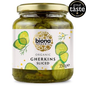 NEW! Biona Sliced Gherkins 350gPickled in vinegar with a blend of mustard seeds and dill, these Gherkin Slices are packed full of flavour. Small and crunchy, they are the perfect addition to a veggie burger, or as a side dish with a BBQ. They also add a tasty punch to a salsa or gazpacho soup.