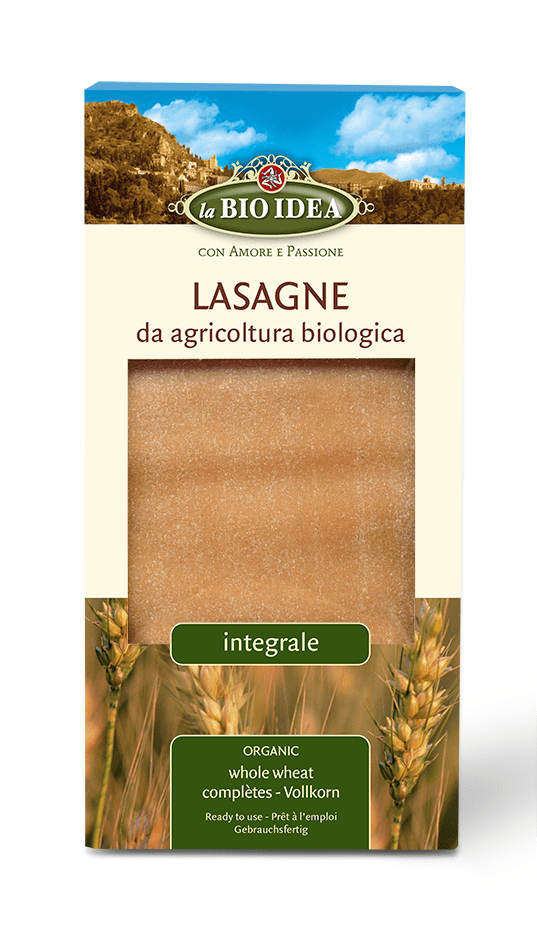 Wholewheat lasagne from Northern Italy, produced with passion and love. De lasagne sheets are pre cooked and ready to use directly in the baking pan.