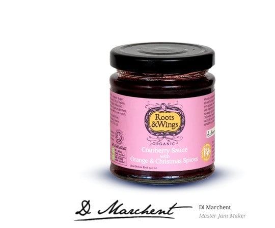 Whole organic cranberries have been gently stirred by hand in traditional copper pans with organic oranges, cinnamon, ginger and allspice to create a deeply rich sauce bursting with fruit and rich flavours.