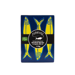 Fish4Ever Smoked Sprats in Olive Oil 110gDelightful smoked sprats in organic extra virgin olive oil. Great Taste Award Winner 2024. (2 stars) Responsibly-fished sprats caught by local boats in the Baltic Sea. High in omega 3.